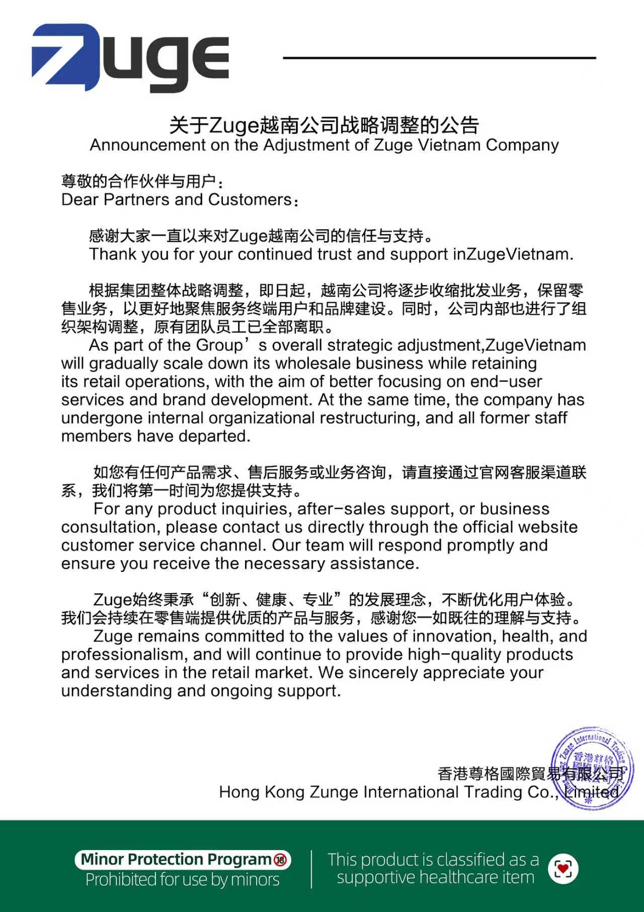 To optimize our strategic layout, Zuge Vietnam will immediately focus on retail sales and customer service, gradually reducing our existing wholesale operations. This adjustment will not affect our products or after-sales service in Vietnam. You can contact us through our official website and we will continue to provide you with professional support.